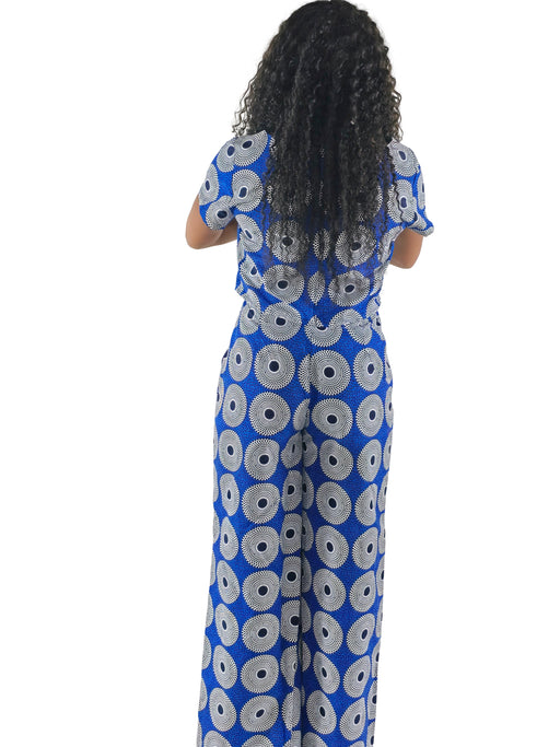 View full detailsStep out in style with Fatimah, a vibrant 2-piece set featuring a fitted crop top and wide-leg pants in bold blue Ankara print. Effortlessly chic a...