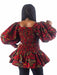 Tiara Smocked Ankara Peplum Top with Puffy Sleeves